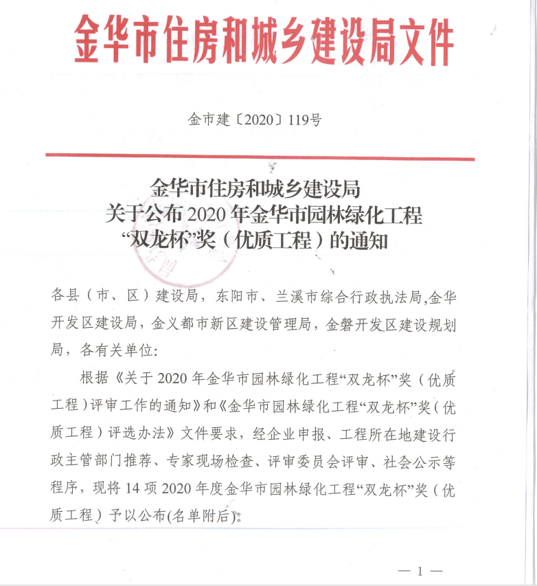 下一頁:2020年金華市園林綠化工程榮獲“雙龍杯獎”