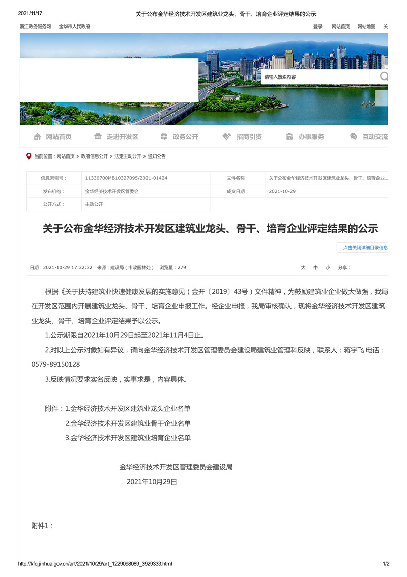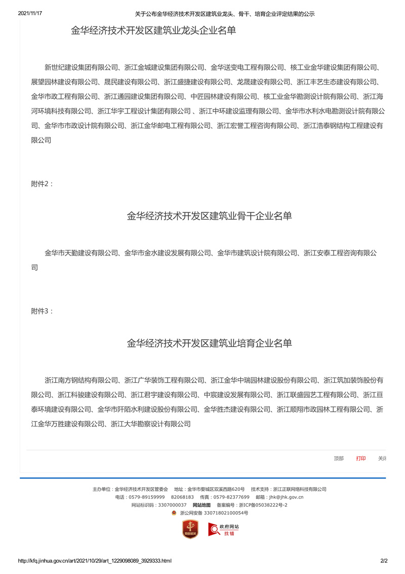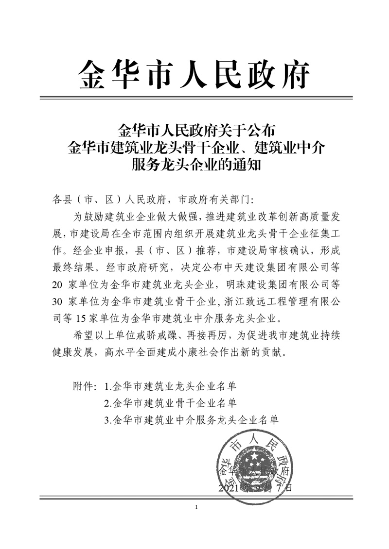 下一頁:關于公布金華經(jīng)濟技術開發(fā)區(qū)建筑業(yè)龍頭企業(yè)、骨干企業(yè)、培育企業(yè)認定結果的通知