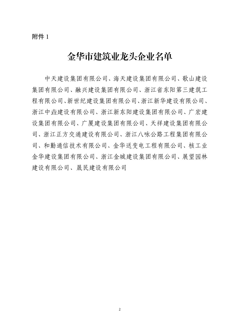 金華市建筑業(yè)龍頭骨干企業(yè)、建筑業(yè)中企服務龍頭企業(yè)的通知
